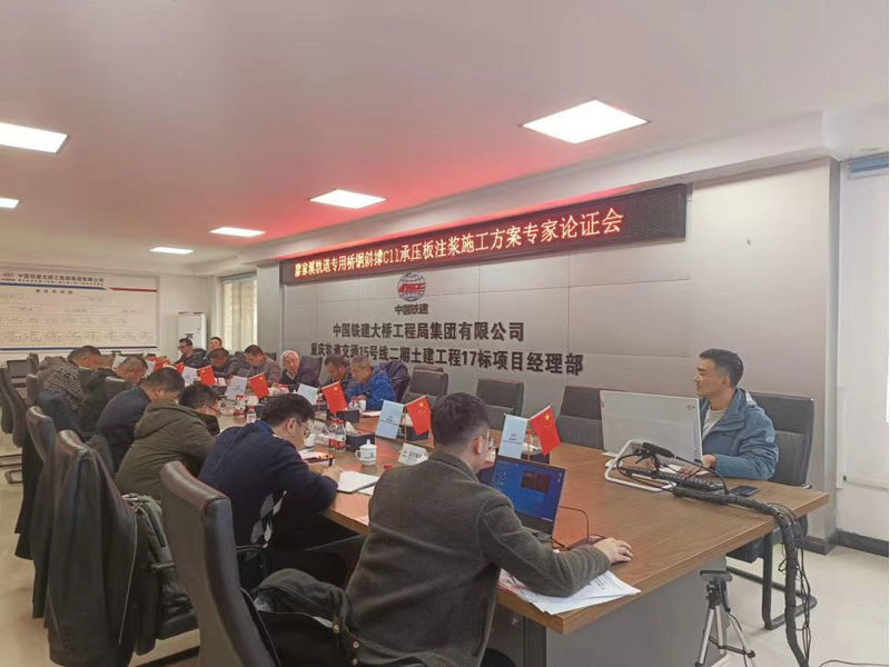 1月15日下午,中鐵建重慶軌道交通15號(hào)線二期土建工程總承包部所屬17標(biāo)項(xiàng)目部組織專家組、建設(shè)單位、設(shè)計(jì)單位、勘察單位、監(jiān)理單位、監(jiān)測(cè)單位和施工總承包單位召開《廖家溪軌道專用橋C11鋼斜撐承壓板注漿施工方案》專家論證會(huì),經(jīng)過專家組的評(píng)審,確認(rèn)該專項(xiàng)施工方案切實(shí)可行順利通過了論證。