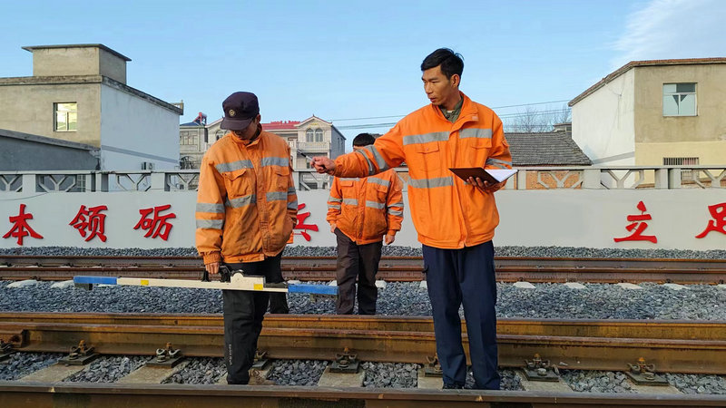 日前,在中國(guó)鐵路上海局集團(tuán)有限公司阜陽(yáng)工務(wù)段王寨示范隊(duì)練功場(chǎng),第四期隊(duì)員翟祥雨向幾名同事詳解道岔檢查標(biāo)準(zhǔn)。大家邊聽(tīng)邊問(wèn),翟祥雨總是不厭其煩地解答。這是繼上周培訓(xùn)過(guò)一批同事后,翟祥雨在本周又開(kāi)始新的一批人員道岔檢查培訓(xùn)。