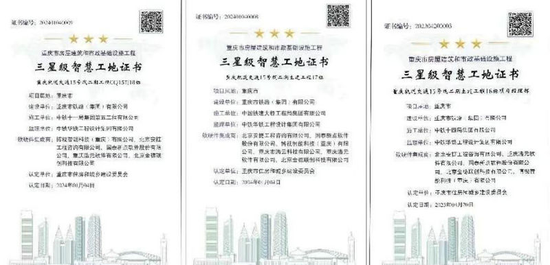 重慶軌道15號線二期總承包部所屬三個標段榮獲“三星級智慧工地”稱號