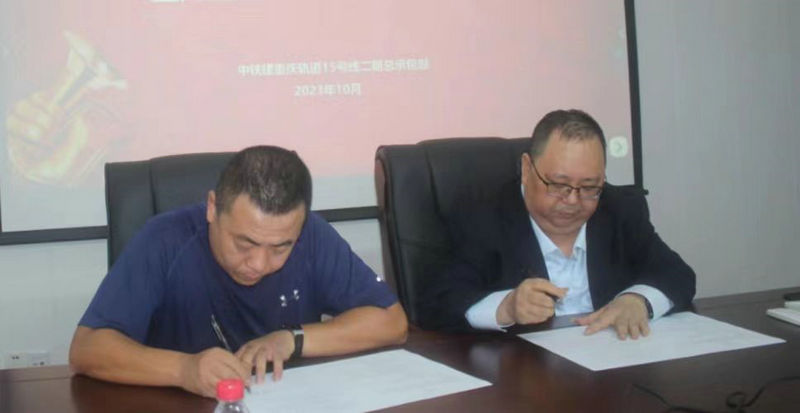 李兵(右)與標段簽訂安全包保責任書