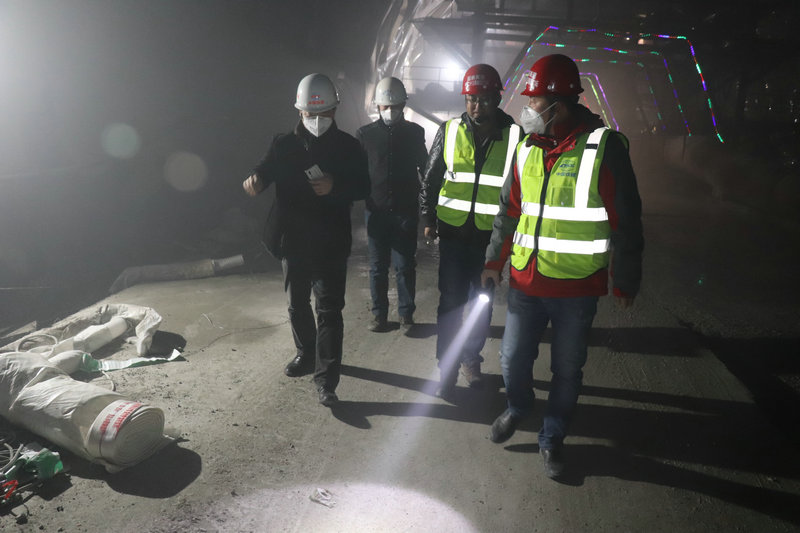 宋建軍一行在延崇ZT3項目部會議室細致檢查了平安工地建設安全方面的內(nèi)業(yè)資料,針對上次“平安工地”考核存在問題的整改情況,聽取了項目安全環(huán)保部門的詳細匯報。他指出,當前已經(jīng)進入冬季施工期,要高度樹立安全紅線意識,嚴格把控安全質(zhì)量,明確“安全無小事”理念,做到防患于未然。內(nèi)業(yè)檢查完畢,宋建軍一行驅(qū)車前往杏林堡斜井特長隧道,對隧道施工現(xiàn)場情況進行了深入了解,他指出要保證冬施期間現(xiàn)場生產(chǎn)安全,提高安全意識,把安全放在首位。隨后宋建軍一行前往項目部拌合站,檢查了生產(chǎn)設施、安全保障措施及物品,向拌合站負責人詳細詢問了冬施安全防護措施落實情況,對拌合站的工作表示肯定,希望項目部再接再厲,在保證現(xiàn)場安全質(zhì)量的同時,對后續(xù)安全生產(chǎn)做好謀劃。