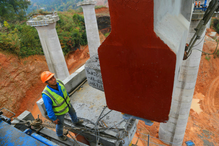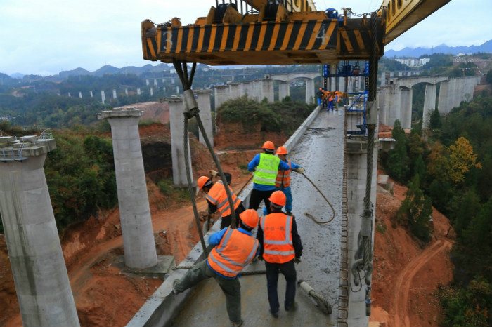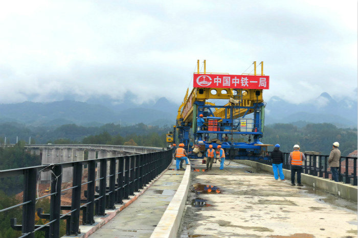 “渝東南地區(qū)常年大霧多雨,自然環(huán)境對(duì)架梁施工影響極大??缥晃挥趩尉€小曲線上,這對(duì)JQ185型架橋機(jī)立柱、過跨、喂梁、橫移、T梁安全準(zhǔn)確對(duì)位等作業(yè)來說是一個(gè)很大的難題,每一項(xiàng)步驟都需要按照施工計(jì)劃方案進(jìn)行精心組織”,該項(xiàng)目鋪架隊(duì)負(fù)責(zé)人石修培介紹道。