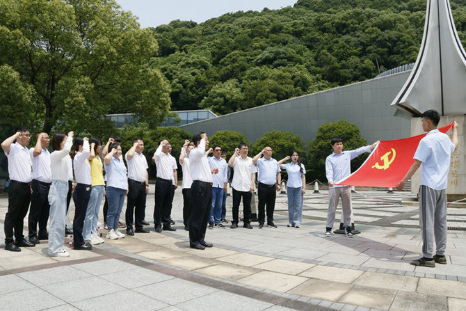 黨員面對(duì)黨旗莊嚴(yán)宣誓