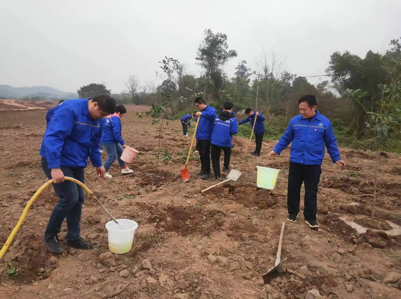 兩個(gè)項(xiàng)目部的黨群干群栽植新綠