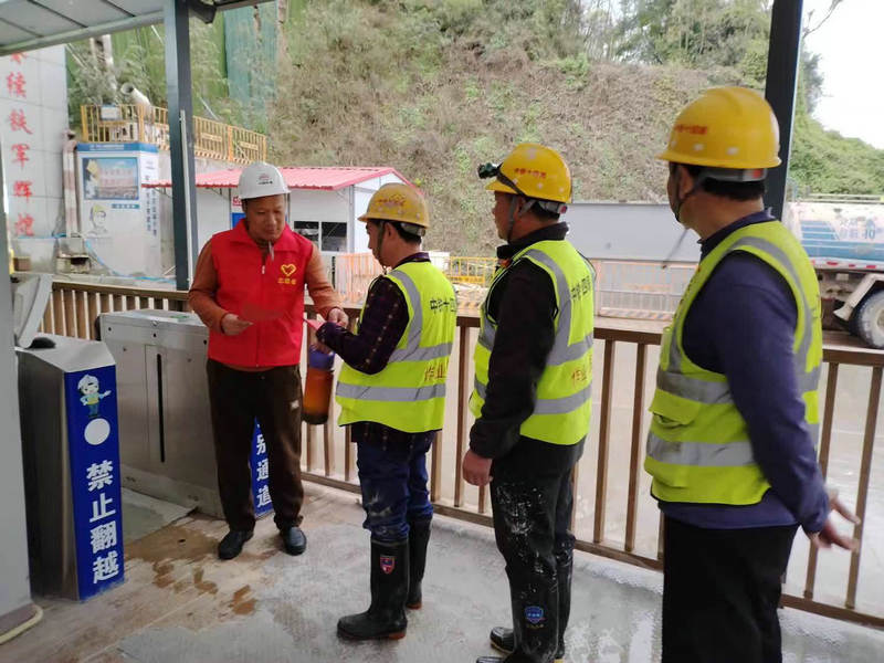 項目部學雷鋒志愿者為進入隧道施工員工發(fā)放安全、質量、環(huán)保宣傳傳單