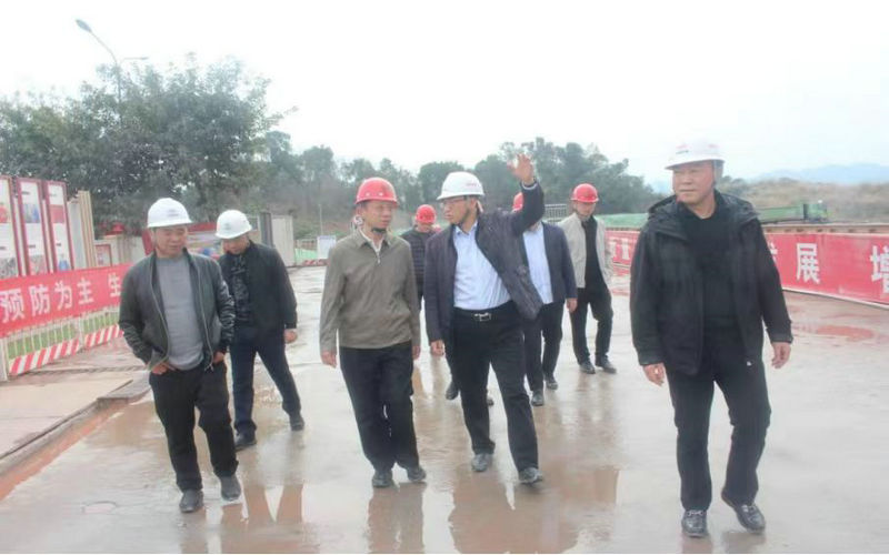劉偉(右3)查看井口站施工現(xiàn)場(chǎng)