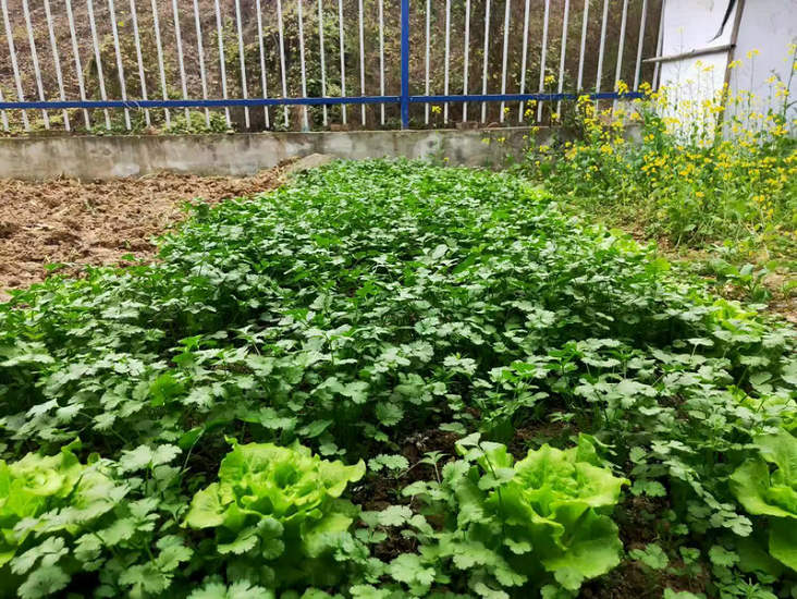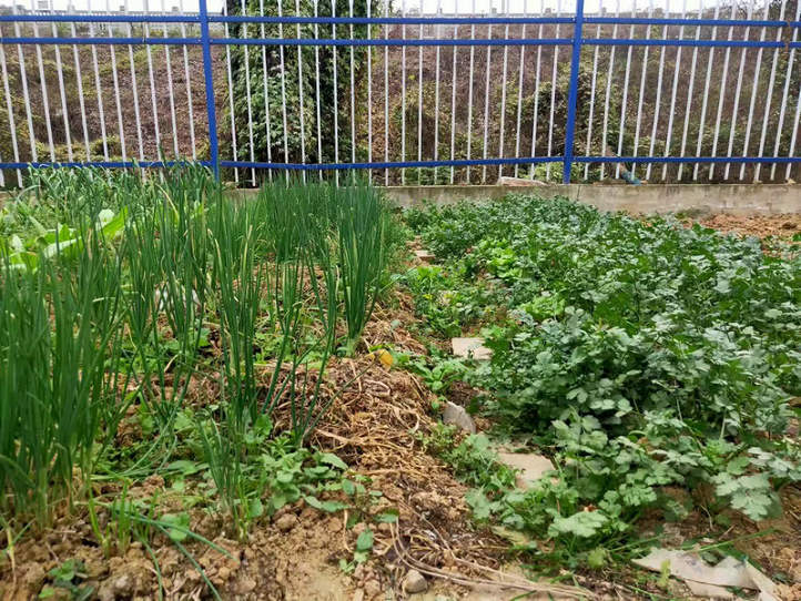 學(xué)雷鋒小菜園第二茬播撒的香菜還沒有吃完、第三茬長(zhǎng)勢(shì)喜人