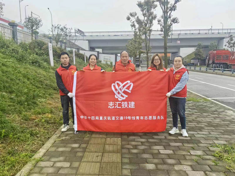 重慶軌道15號線二期16標項目團支部:開展“鐵建藍、學雷鋒、助美化”志愿服務拔草活動