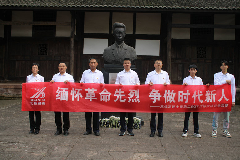 為弘揚(yáng)革命精神,賡續(xù)紅色基因,清明前夕,北新投資公司所屬重慶雙錢高速公路土建施工SQTJ2標(biāo)段項(xiàng)目黨支部在重慶合川區(qū)周吉可烈士故居開展“緬懷革命先烈,爭做時(shí)代新人”主題黨日活動(dòng)。項(xiàng)目部全體黨員和入黨積極分子參加活動(dòng)。