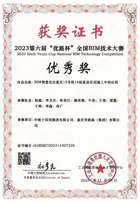 榮獲2023第六屆“優(yōu)路杯”全國BIM技術(shù)大賽優(yōu)秀獎