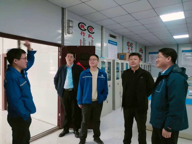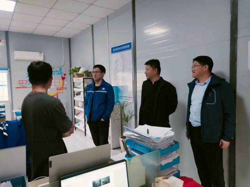 公司副總經(jīng)理兼總工程師李洪江(右2)工會副主席張泉濱(右1)在安環(huán)部了解安全受控情況