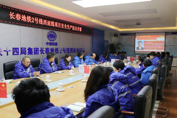 中國(guó)鐵路工程建設(shè)網(wǎng)訊(通訊員 王福生 范明溪 報(bào)道)12月4日,中鐵十四局集團(tuán)長(zhǎng)春地鐵2號(hào)線西延線項(xiàng)目部的員工們,剛剛吃完早餐就拿著筆記本三步并作兩步的往會(huì)議室奔去,生怕沒了座位,這是怎么回事呢?事情是這樣的,根據(jù)工作安排,今天上午,項(xiàng)目負(fù)責(zé)人周松為大家宣講《安全生產(chǎn)法》。