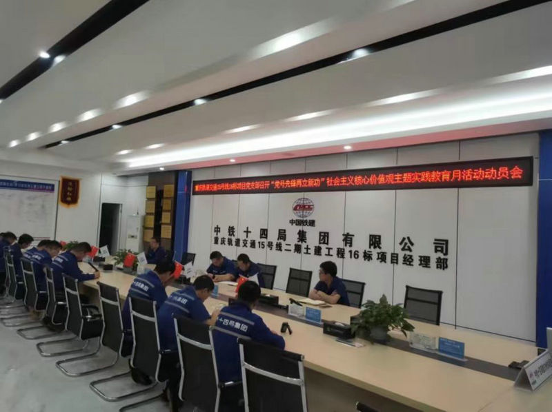 為全面貫徹學習習近平總書記文化思想,著力培育和踐行社會主義核心價值觀,深入推進社會主義精神文明建設(shè),中鐵建重慶軌道交通15號線二期總承包部16標14局項目黨支部,充分利用會議動員,營造濃厚的宣傳氛圍,積極廣泛大力弘揚社會主義核心價值觀正能量,為項目施工提供攻堅克難的強大動力。