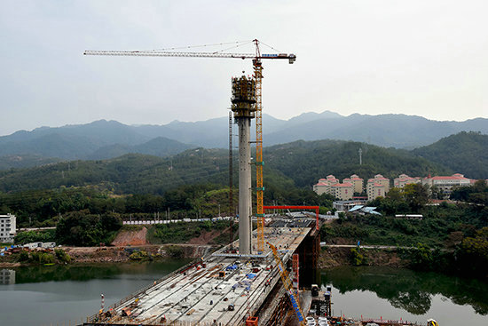 12月5日,中鐵建大橋工程局一公司上杭潭頭大橋主塔最后一節(jié)澆筑完成,87.5米高的主塔順利封頂,圓滿實現(xiàn)關(guān)鍵節(jié)點目標(biāo)。