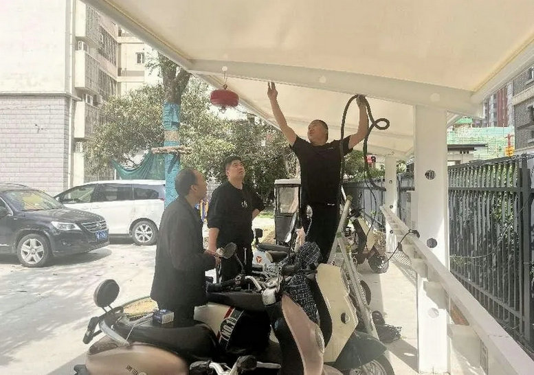 隴海中路11號院 隴海中路11號院新建掃碼充電車棚1處,加裝充電插頭40個(gè),使小區(qū)戶數(shù)與充電設(shè)備比例達(dá)到2:1,從根本上解決了業(yè)主充電難而違規(guī)推電動(dòng)車入戶的問題。物業(yè)服務(wù)中心在車棚內(nèi)間隔2米安裝了懸掛式溫度感應(yīng)自動(dòng)滅火器置,為電動(dòng)車充電區(qū)配備充足可靠的消防安全設(shè)施。