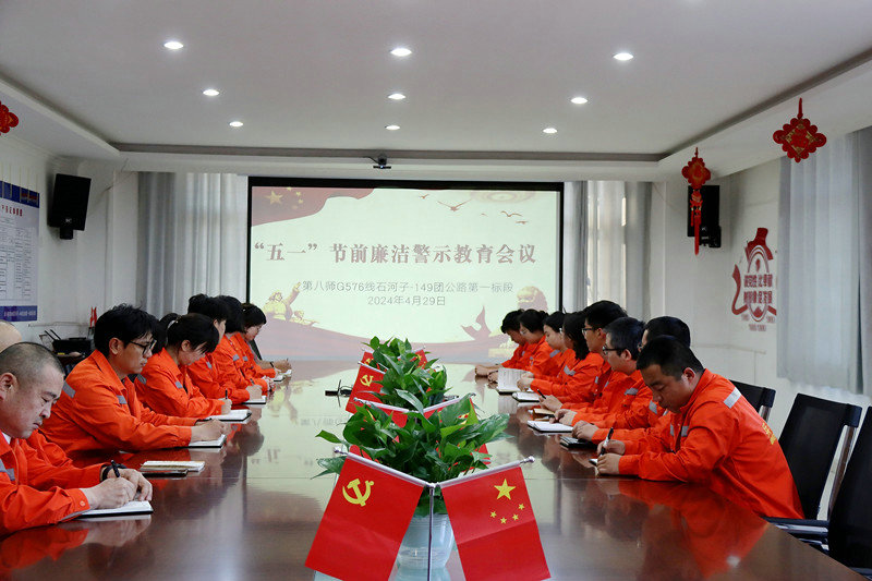 2024年4月29日,根據(jù)北新路橋集團(tuán)兵團(tuán)交建公司紀(jì)委工作部署要求,第八師G576線石河子-149團(tuán)公路工程第一合同段項(xiàng)目組織全體員工召開(kāi)“五一”節(jié)前廉潔警示教育會(huì)議。