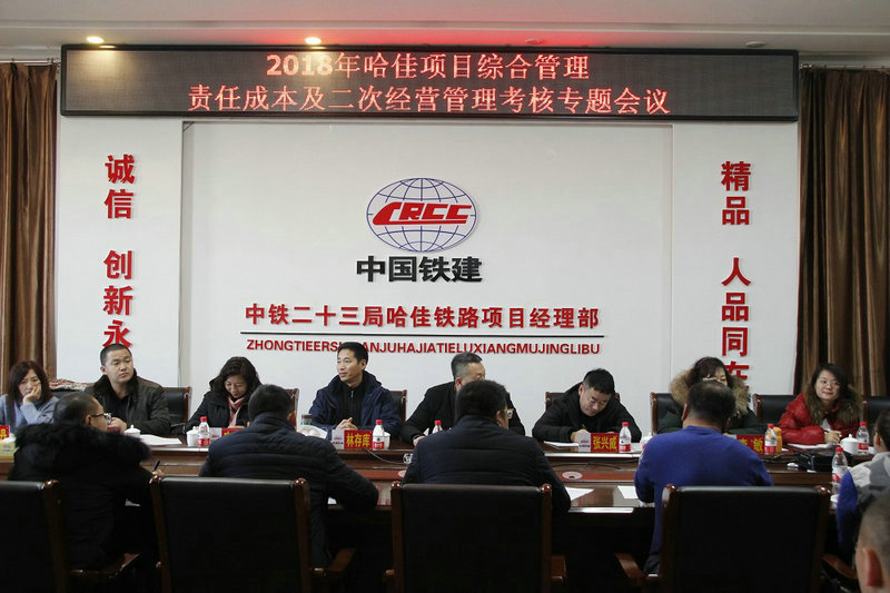 12月7日至8日,由中鐵二十三局集團(tuán)第二工程有限公司黨委副書記、紀(jì)委書記林存庫,副總經(jīng)理王曉軍帶隊(duì)的二公司年度項(xiàng)目綜合管理責(zé)任成本及二次經(jīng)營考核組深入哈佳項(xiàng)目部進(jìn)行了為期兩天的綜合考核,考核組通過聽項(xiàng)目匯報(bào)、查看對口查內(nèi)業(yè)、對口及綜合交流等形式,順利完成了對哈佳項(xiàng)目2018年度的考核。 公司經(jīng)管部、工程部、安質(zhì)部、黨委工作部、物資設(shè)備部、法律事務(wù)部、人力資源部等12名考核組成員參加了考核。