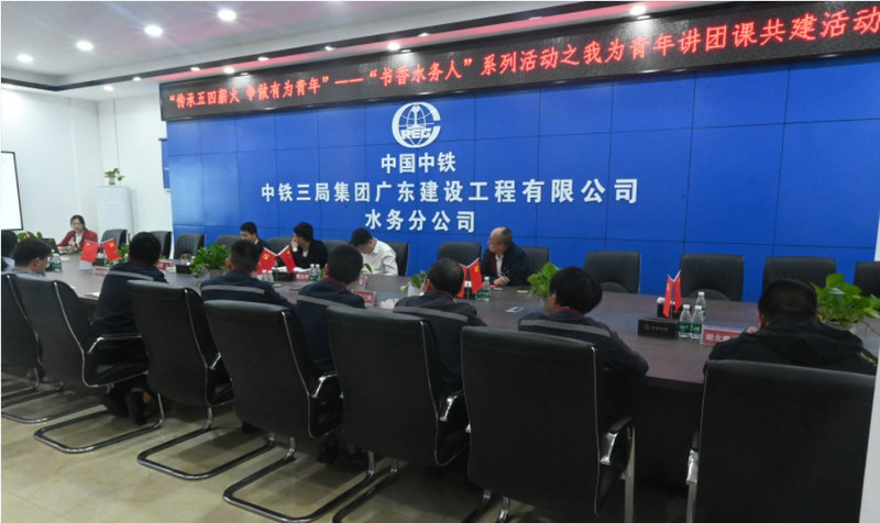 4月30日,天門團(tuán)市委主辦,中鐵三局、天門日清生態(tài)治理有限公司承辦的“傳承五四薪火 爭做有為青年”——“書香水務(wù)人”系列活動之我為青年講團(tuán)課共建活動在中鐵三局天門水污染治理和水資源保護(hù)利用項(xiàng)目部順利舉辦,天門團(tuán)市委書記戴佳輝、副書記李翔,天門市黨校副校長郭瑤,中鐵三局廣東公司工會主席、副張經(jīng)理劉建忠以及中鐵三局、水電五局、十六化建等單位40余位青年參加活動。