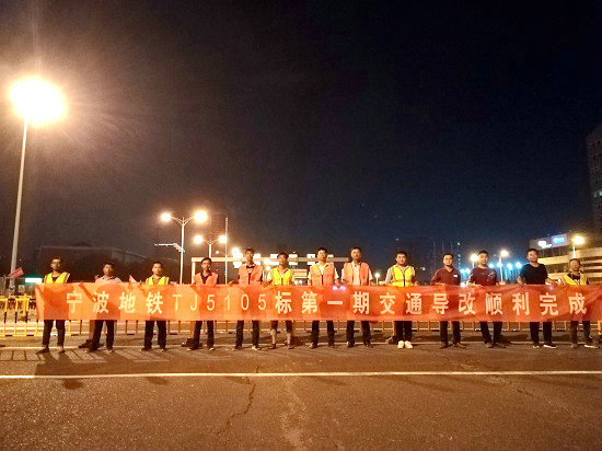 9月19日,導(dǎo)改的日子如期而至。“今天的導(dǎo)改很重要,慢點沒事兒,希望大家都要動起來。”說這話的是項目經(jīng)理王樹良,個高且瘦,皮膚黝黑,平時臉上都堆著笑,今天卻格外的嚴肅。從早上到現(xiàn)在,王總和譚書記已經(jīng)在現(xiàn)場蹲了一天了,中午盒飯,晚上還是盒飯。“你、你,負責指揮錢湖南路的交通;你倆,負責鄞縣大道;剩下的人全部準備拉水碼和隔離護欄。”等大家都到齊后,王總指著導(dǎo)改示意圖,比劃著給大家做了詳細安排。