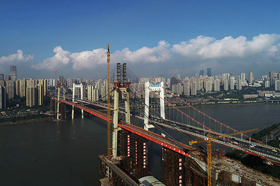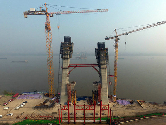 圖四、棋盤洲長(zhǎng)江大橋施工(王成龍攝);