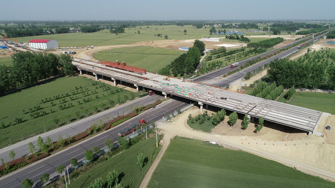 為解決跨國(guó)道施工、施工場(chǎng)地受限、現(xiàn)場(chǎng)交通環(huán)境復(fù)雜、通行車流量大等困難,項(xiàng)目部靠前謀劃、認(rèn)真籌備,及時(shí)梳理、排查施工過程中可能出現(xiàn)的風(fēng)險(xiǎn)隱患,細(xì)化、完善施工方案,明確各自責(zé)任分工,部署應(yīng)急保障措施,及時(shí)組織施工隊(duì)伍進(jìn)行梁板架設(shè)技術(shù)交底,確保梁板架設(shè)過程中安全可控、質(zhì)量達(dá)標(biāo)、進(jìn)度高效。該項(xiàng)目建成后,將對(duì)促進(jìn)長(zhǎng)三角一體化發(fā)展、加快皖北振興戰(zhàn)略實(shí)施、提升區(qū)域高速公路網(wǎng)的整體服務(wù)能力和整體效益,具有重要的意義。