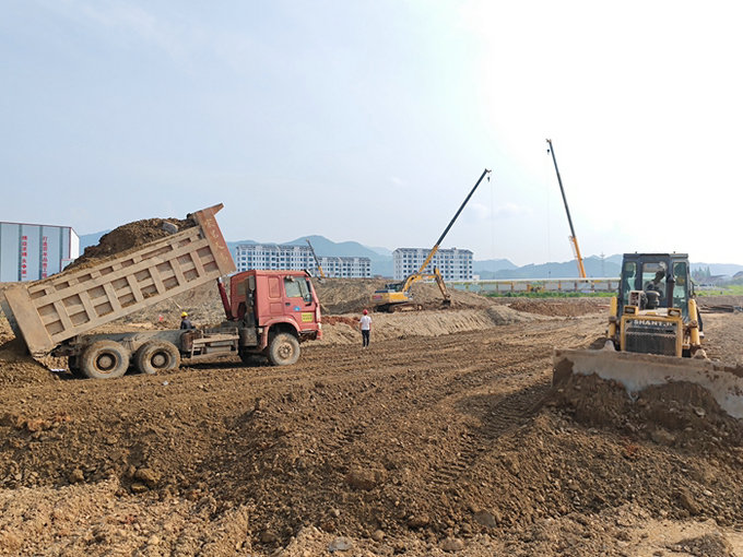 挖掘機、推土機、自卸車聯(lián)合作業(yè) 林茂輝攝