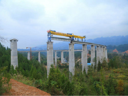 據(jù)項(xiàng)目負(fù)責(zé)人介紹,該項(xiàng)目所承擔(dān)的鋪軌架橋任務(wù)完全不同于地勢(shì)平坦的平原區(qū)段。武陵山區(qū)地形條件復(fù)雜,常年大霧彌漫,墩臺(tái)普遍偏高,橋梁分散,且部分橋體橫跨渝東南地區(qū)的鄉(xiāng)村及便道,無形之間給橋梁運(yùn)輸和架設(shè)工作帶來了重重困難。