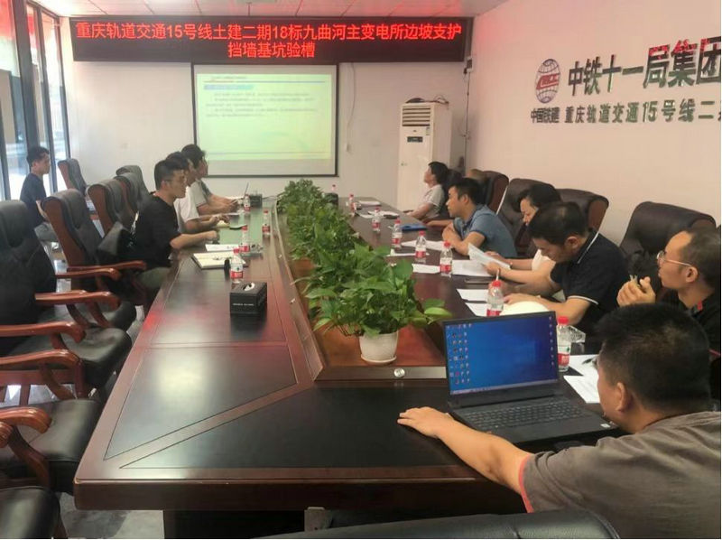 5月24日下午,中鐵建重慶軌道交通15號(hào)線二期土建工程總承包部18標(biāo)項(xiàng)目部組織建設(shè)單位、勘察單位、設(shè)計(jì)單位、監(jiān)理單位、質(zhì)量檢測(cè)單位、第三方測(cè)量單位、第三方監(jiān)控量測(cè)單位、總承包單位以及施工單位召開九曲河主變電所邊坡支護(hù)重力式擋墻基坑基底驗(yàn)槽會(huì)議。建設(shè)單位結(jié)合驗(yàn)收小組現(xiàn)場(chǎng)踏勘情況、資料核查情況及各單位意見,確認(rèn)基底驗(yàn)槽順利通過,準(zhǔn)予進(jìn)入重力式擋墻墻身施工階段。