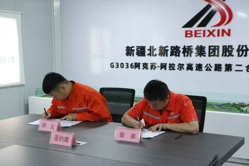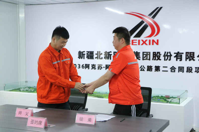 會上宣讀了《兵團交建公司“導(dǎo)師帶徒”培訓(xùn)制度(試行)》,并匯報師徒結(jié)對情況;4對師徒代表現(xiàn)場簽訂了“導(dǎo)師帶徒”協(xié)議,導(dǎo)師代表、徒弟代表分別作交流發(fā)言。