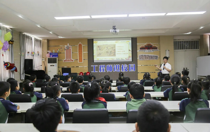 活動中,中鐵中產(chǎn)置業(yè)公司青年工程師在科普課堂上,采用“圖文+視頻”的方式,介紹了房屋的演變歷程,通過建筑歷史、建筑鑒賞、建筑建造、安全知識四個方面的講解,為小學(xué)生們科普建筑知識、提升科學(xué)興趣。隨著對建筑知識的初步了解,小學(xué)生們對建筑建造過程的好奇心愈發(fā)強(qiáng)烈?;顒哟┎辶私ㄖP褪止て创瞽h(huán)節(jié),模擬真實(shí)的房屋建造場景,把小學(xué)生們代入小工程師的角色,增強(qiáng)他們的創(chuàng)新探索精神。