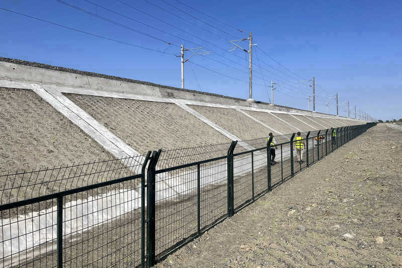 該項目主要剩余工程為沿線防護柵欄,主要用途是阻止人畜進入鐵路線路,防止人身事故發(fā)生,保證行車安全,提高鐵路運輸綜合效益。在防護柵欄和沖刷防護的施工組織過程中,項目部高度重視“首件施工”,作為高質(zhì)量施工生產(chǎn)的“第一顆紐扣”。為有效控制和提高施工質(zhì)量,技術(shù)人員分析施工過程中各種技術(shù)參數(shù)、總結(jié)施工工藝、操作要點,對技術(shù)和質(zhì)量指標進行綜合評價并詳細記錄存檔,為指導防護柵欄施工提供參考依據(jù)。同時,嚴格遵照施工規(guī)范的結(jié)構(gòu)物尺寸、施工工藝進行技術(shù)質(zhì)量交底,審核方案圖紙,項目部還召開技術(shù)交流會,為首件工程的各分項工程的施工確定最佳工藝,理清脈絡(luò)從而確定現(xiàn)場投入的機械設(shè)備、人員、材料、儀器以保證工程需要。施工過程中,技術(shù)人員對防護柵欄的控制點位進行精準放樣,多次復(fù)測,確保點位精確,對首件工程施工的尺寸監(jiān)測、檢查,記錄質(zhì)量狀況、對特殊地段(遇排水溝、涵洞等)工藝細節(jié)做出調(diào)整,找出施工中的不足并加以改正,編制施工總結(jié)進一步完善全套施工組織。