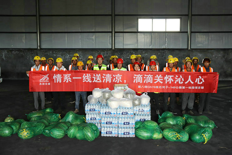 石河子訊(通訊員 尹紅梅)兵團交建公司第八師 G576 一標(biāo)項目持續(xù)開展我為職工辦實事、辦好事活動,始終秉持“以人為本”的管理理念,深知一線員工是項目建設(shè)的基石,在即將來臨的酷暑天氣,項目部未雨綢繆,情系一線,于6月中旬開展“情系一線送清涼,滴滴關(guān)懷沁人心”慰問活動,為一線員工送去清涼和關(guān)愛。防暑降溫工作絕非小事,它關(guān)系到每一位職工的身心健康,更關(guān)乎整個項目的安全穩(wěn)定。