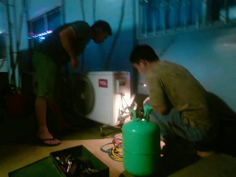 設(shè)備物資部深夜陪維修工修理空調(diào)