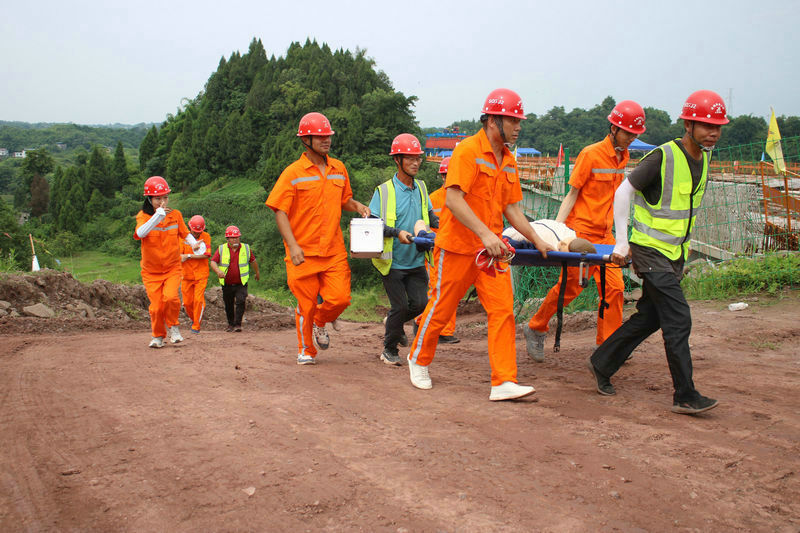 上午10時(shí),應(yīng)急救援演練正式開始:正在萬福大橋橋面鋪裝臨邊作業(yè)的一名“工人”不慎摔下8米高的橋底,“不好啦,有人掉下去了”,工友大聲呼喊,現(xiàn)場(chǎng)安全員和班組長(zhǎng)迅速到達(dá)出事地點(diǎn)查看“傷情”,并立即撥打120電話及時(shí)報(bào)告項(xiàng)目經(jīng)理。“馬上啟動(dòng)項(xiàng)目應(yīng)急預(yù)案,各應(yīng)急小組立即趕往事故現(xiàn)場(chǎng)”,項(xiàng)目經(jīng)理接到電話后立即作出救援部署,隨后帶領(lǐng)醫(yī)療救護(hù)組、安全保衛(wèi)組、技術(shù)保障組和疏散引導(dǎo)組小組人員,迅速趕往事故現(xiàn)場(chǎng)開展“傷員”救護(hù)、工人疏散、外圍警戒、現(xiàn)場(chǎng)清理等工作,并協(xié)助120救護(hù)車轉(zhuǎn)送“傷員”至就近醫(yī)院......,整個(gè)演練過程持續(xù)約40分鐘,按照應(yīng)急預(yù)案有序推演,演練取得了圓滿成功。