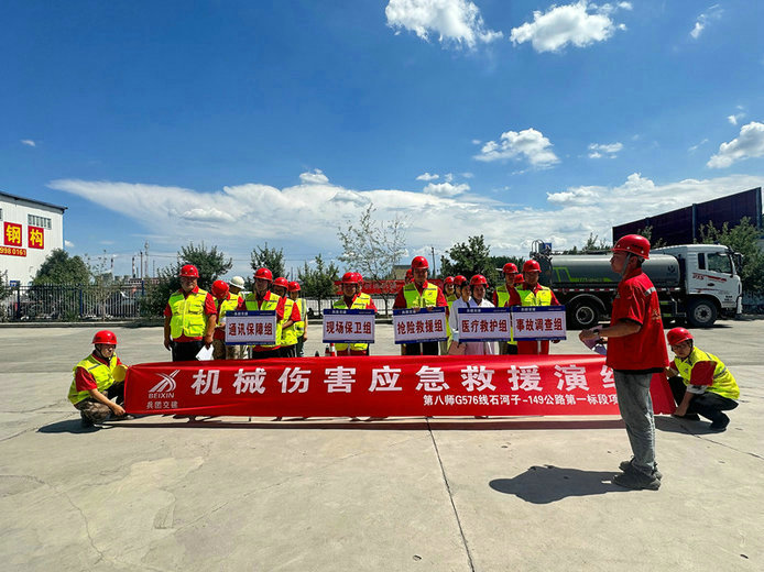 近日,北新路橋集團(tuán)兵團(tuán)交建公司第八師 G576一標(biāo)項目組織開展了機械傷害事故應(yīng)急救援演練。項目職工及現(xiàn)場工人共計24人參加。