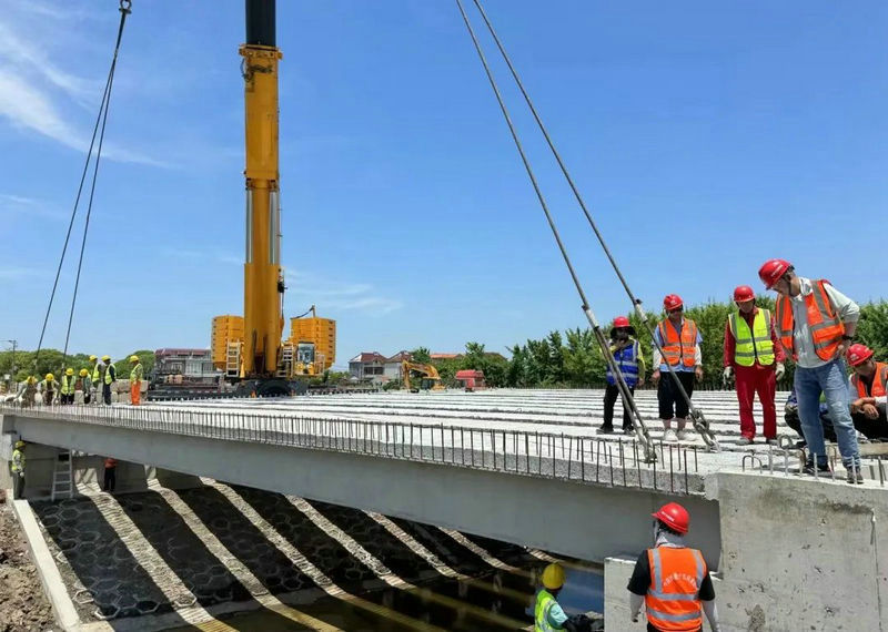 鐵路工程建設網訊(通訊員張聰聰)近日,隨著最后一片長23米,重45噸的空心板梁精準落位,中鐵十五局上海Y4路項目蘇橋河橋左幅梁板安裝順利完成,為項目后續(xù)便道導改及右幅橋梁施工創(chuàng)造了有利條件,有效推進了項目施工進展。