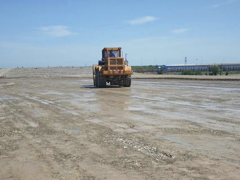 圖為新疆兵團建工水電集團市政路橋公司第五師雙河市G577沙山子-G219線公路(互通立交工程)主線K8+700-K8+500段沖擊碾夯實。(王小丫 攝)