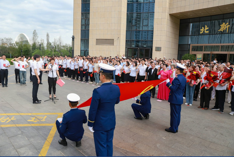 烏魯木齊訊(通訊員 雒煥鼎)7月1日,北新投資公司黨委與烏魯木齊市高鐵街道黨工委聯(lián)合開展慶祝建黨103周年“黨旗映天山”主題黨日活動,回顧黨的光輝歷程,傳承黨的優(yōu)良作風(fēng),進(jìn)一步增強(qiáng)兵地各族干部職工的榮譽(yù)感、責(zé)任感和使命感,堅定新時代共產(chǎn)黨人的理想信念。北新投資公司、高鐵街道黨工委、北新大廈部分企業(yè)代表、高鐵街道各社區(qū)全體黨員干部共300余人參加活動。