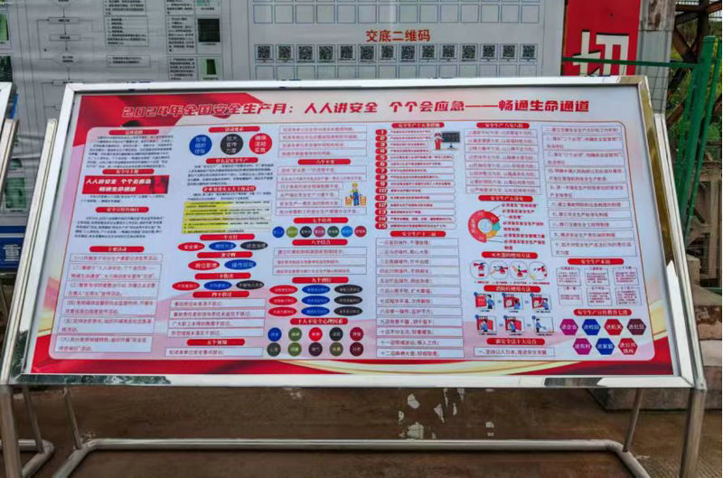 項(xiàng)目自上而下廣泛深入的開展宣傳、教育工作。在人員經(jīng)過的通道處、會(huì)議室、施工現(xiàn)場(chǎng)及辦公區(qū)和工人生活區(qū)顯著位置,設(shè)置“安全生產(chǎn)月”專題展板及掛設(shè)各類安全宣傳牌,讓全體作業(yè)人員感受到“安全生產(chǎn)月”濃厚的文化氛圍。用輿論導(dǎo)向激發(fā)項(xiàng)目部職工及施工人員積極參與熱情,讓他們牢固樹立“安全第一”的思想,把規(guī)范自己的行為、注重安全生產(chǎn)演變?yōu)樽杂X活動(dòng)。讓全體作業(yè)人員感受到“安全生產(chǎn)月”濃厚的文化氛圍,拉開了“安全生產(chǎn)月”活動(dòng)的序幕。