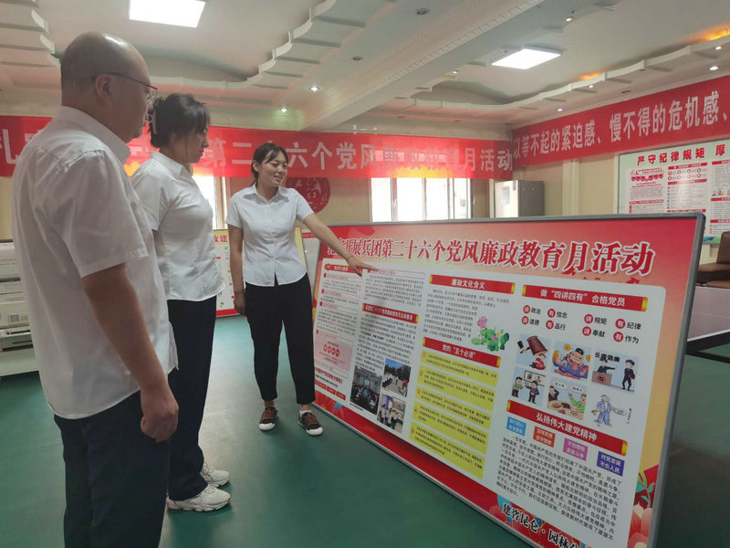 烏魯木齊訊(通訊員 趙泉友)7月19日,新疆兵團(tuán)第十一師建咨集團(tuán)所屬新疆建咨昆侖工程建設(shè)有限責(zé)任公司紀(jì)檢辦工作人員向公司員工解讀展板內(nèi)容。在兵團(tuán)第二十六個(gè)黨風(fēng)廉政教育月活動(dòng)期間,該公司黨委通過(guò)深入開(kāi)展黨的創(chuàng)新理論學(xué)習(xí)、廉政警示教育、紀(jì)法知識(shí)講座、專(zhuān)題板報(bào)展、參觀紅色教育基地等形式,教育廣大黨員干部增強(qiáng)廉潔自律意識(shí),提高拒腐防變能力,做清正廉潔的表率。為您推薦