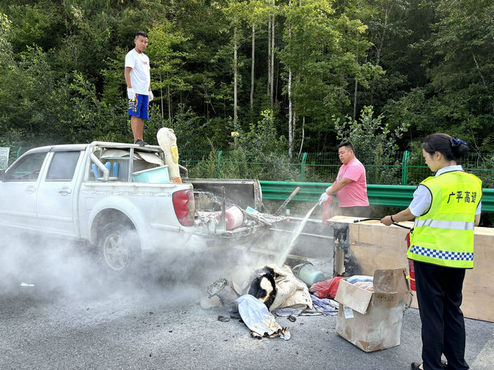 當日17時28分,一輛皮卡車行駛至北新路橋集團承建的S18廣平高速公路樂安收費站出口,當班收費員鄒金芝發(fā)現(xiàn)其后車廂冒出濃煙、且有火苗若隱若現(xiàn),立即通過手勢、呼喊其駛出收費島、靠邊停車、人員下車,同時報告監(jiān)控中心。收到火情信息的站管人員董利萍、孫麗攜帶手持式滅火器迅速趕到現(xiàn)場,一邊對火勢進行壓制,一邊指導司乘人員卸載后車廂物品、清查火源,經(jīng)10多分鐘、連續(xù)使用4具手持式滅火器進行撲救,車輛基本保住,所載貨物大部挽回,未造成任何人員傷亡。
