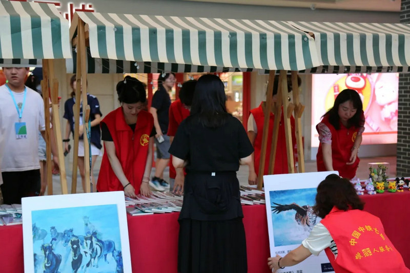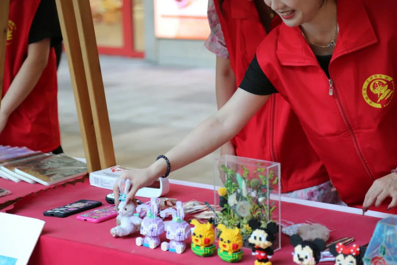 活動現(xiàn)場設(shè)置了12個攤位,籌集了來自公益組織的書籍雜志、手工藝品等義賣物品。身穿紅馬甲的中鐵中產(chǎn)置業(yè)公司青年志愿者和新東方學(xué)生化身為攤位攤主,熱情地向往來的市民游客推銷義賣物品。除了義賣活動外,新東方學(xué)生還在中鐵·泰和里街區(qū)主舞臺表演了精彩的節(jié)目演出,吸引了大量市民游客的目光。