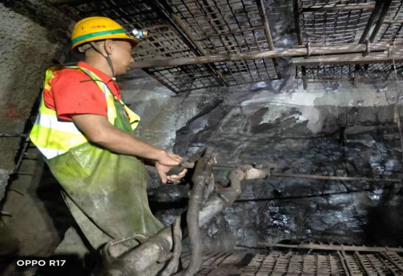 16標(biāo)工人在中梁山隧道作業(yè)現(xiàn)場鉆炮眼(杜曉言攝)