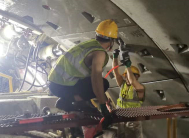 18標(biāo)項(xiàng)目部盾構(gòu)工班工人在安裝管片(張春攝)