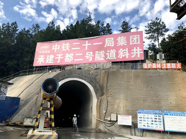于都2號隧道正洞全長4552米,是興泉鐵路全線控制性工程之一。斜井全長830米,作為隧道在建期間的輔助坑道,采用單車道斷面設計,承擔正洞大里程方向、小里程方向共1500米開挖施工任務,其位于密林深處,地勢險峻、溝壑縱橫,暴雨常襲,自建、擴寬狹長彎多的施工便道數(shù)公里,材料、設備運輸極其困難,施工難度大,安全風險高。