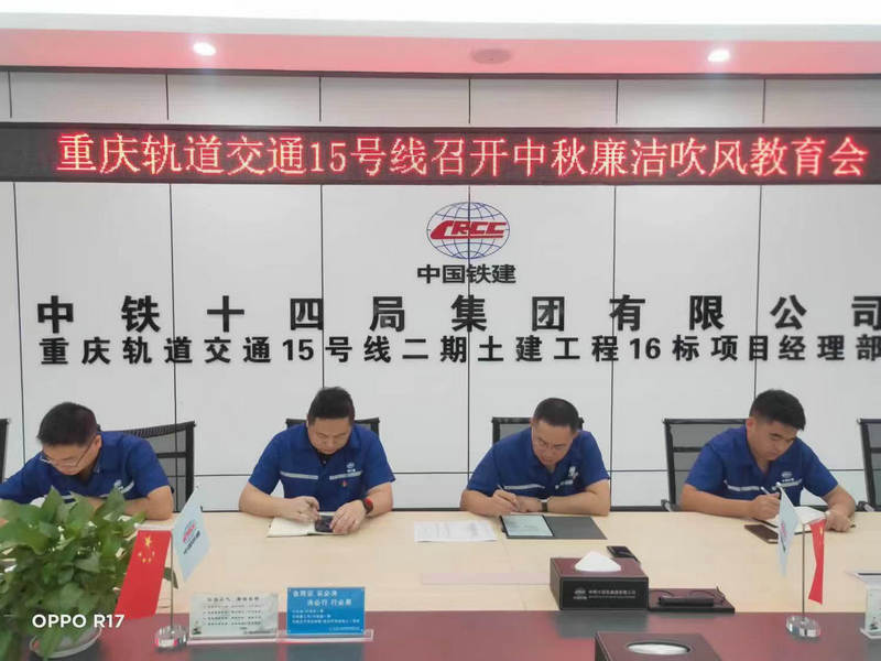 中秋將至,廉潔過(guò)節(jié)。8月19日,中鐵建重慶軌道交通15號(hào)線(xiàn)二期總承包部16標(biāo)項(xiàng)目黨支部召開(kāi)中秋廉潔吹風(fēng)教育會(huì),為廉潔過(guò)中秋注射了“預(yù)防針”。