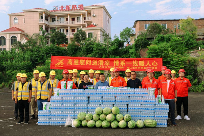 酷暑送清涼,關(guān)愛暖人心。8月20日,內(nèi)江市東興區(qū)水利局黨組書記、局長劉太平一行來到北新路橋集團(tuán)西安分公司內(nèi)江市東興區(qū)水務(wù)示范縣項(xiàng)目開展“送清涼”慰問調(diào)研。