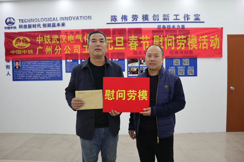 1月4日下午,中鐵武漢電氣化局廣州分公司工會2019年元旦春節(jié)慰問勞?;顒釉诿飞蔷C合基地舉行,廣州分公司黨委書記何明全代表工會親切慰問了中國中鐵勞模和湖北省五一勞動獎?wù)芦@得者陳偉。梅汕項(xiàng)目部黨工委書記吳軍、經(jīng)理李衛(wèi)國一同參加了慰問。何書記與勞模親切握手并為勞模送上了慰問金。