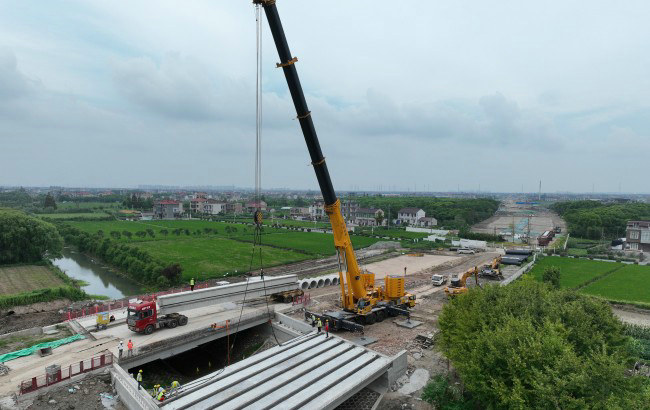 鐵路工程建設(shè)網(wǎng)訊(通訊員 張聰聰) 近日,隨著最后一片長23米,重45噸的空心板梁精準落位,由中鐵十五局承建的上海Y4路(大蘆線-臨港大道)道路新建工程項目蘇橋河橋右幅梁板順利安裝完成,為后續(xù)路基路面施工奠定了堅實基礎(chǔ)。