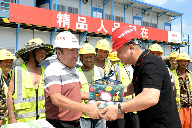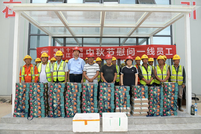 鐵路工程建設(shè)網(wǎng)訊 八月桂花香,佳節(jié)濃濃情。9月14日,中鐵十五局集團(tuán)常山江航電樞紐項(xiàng)目部慰問奮戰(zhàn)在最“前線”工人,將企業(yè)的關(guān)懷和祝福傳遞給每個(gè)人。